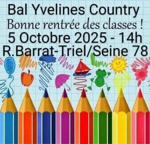 Le Dimanche 05 Octobre 2025, Après Midi Bal Country chez *Yvelines Country* , à 14h00, à Barrat -Triel – Seine (78) Yvelines.
