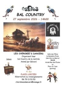 Le Dimanche 27 Septembre 2026, Après Midi Bal Country des *Cherokee’s Dancers*, à 14h00, Salle des