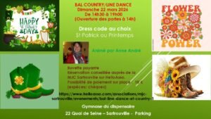 Le Dimanche 22 Mars 2026, Après Midi Bal Country Line Dance st Patrick de 14h30 à 19h00, Gymnase du Dispensaire, 22 Quai de Seine, à Sartrouville