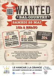 Le Samedi 25 Mai 2024, Bal Country de 18h00 à 22h30, Le Hangar La Grange, à St Germain de la Grange (78), Yvelines.