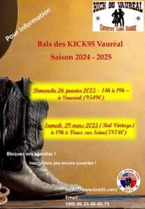 Le Dimanche 29 Mars 2025, Après Midi Country Dance des *Kick 95 *,à 19h00, à Vaux sur Seine (78740), Yvelines.