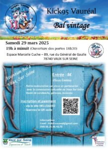 Le Samedi 29 Mars 2025, Bal Vintage de 19h00 à 00h00, chez *Kick 95 Vaureal*, Espace Marcelle Cuche, 89, rue du Général de Gaulle, à Vaux sur Seine (78740), Yvelines.