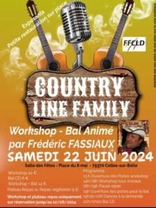 Le Samedi 22 Juin 2024, Journée Country, à partir de 13h00, avec Workshop de *Frédéric Fassiaux* et Bal Country cd, Salle des Fetes, Place du 08 Mai, à Celles sur Belle (79), Deu
