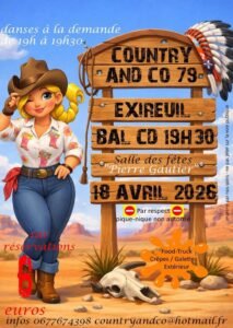 Le Samedi 18 Avril 2026, Bal Country cd des *And Co 79*, à 19h30, Salle des Fetes Pierre Gautier , à Exireuil (79), Deux Sèvres.