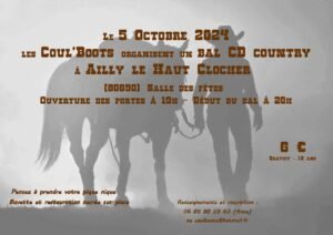 Le Samedi 05 Octobre 2024, Bal Country cd, organisé par *Les Coul’Boots*, à 20h00, Salle des Fetes de Ailly le Haut Clocher (80690), Somme.