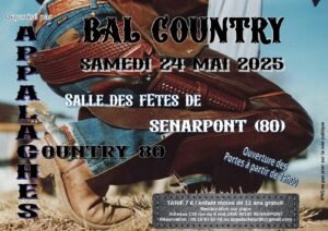 Le Samedi 24 Mai 2025, Bal Country chez *Appalaches Country 80*, à 19h00, 130, rue du 8 Mai 1945, à Senarpont (80140), Somme.