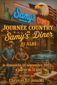 Le Dimanche 14 Septembre 2025, Journée Country animée par *Chrys DJ Jean Mi*, à partir de 11h00, au *Samys’s Diner*, à Albi (81), Tarn.