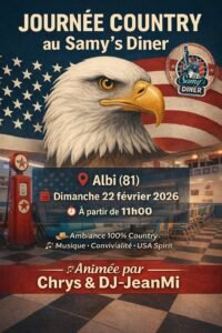 Le Dimanche 22 Février 2026 à partir de 11h00, Journée Country animée par *Chrys & DJ .Jean Mi*, au Samy’s Dîner, à Albi (81), Tarn.