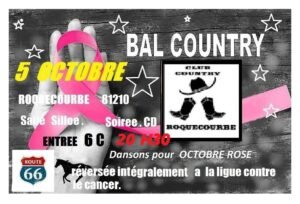 Le Samedi 05 Octobre 2024, Bal Country cd, avec le *Club Country de Roquecourbe* , au Profit de la Ligue contre le Cancer, à 20h30, Salle Silloe, à Roquecourbe (81210), Tarn.