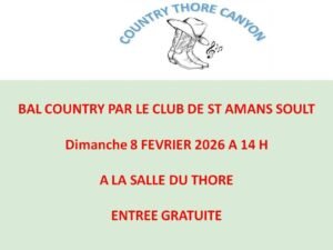 Le Dimanche 08 Février 2026, Après Midi Bal Country à 14h00, chez *Country Thore Canyon*, Salle du Thore, à StAmans Soult (81), Tarn.