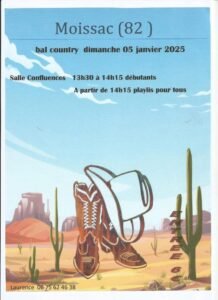 Le Dimanche 05 Janvier 2025, Après Midi Bal Country à 14h15, Salle Confluences, à Moissac (82), Tarn et Garonne.