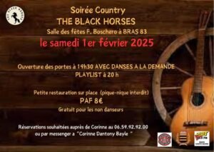 Le Samedi 1er Février 2025, Soirée Country des *The Black Horses*, à 20h00, Salle des Fetes F.Boschero, à Bras (83), Var.