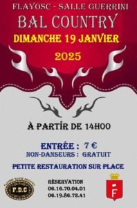 Le Dimanche 19 Janvier 2025, Après Midi Bal Country à 14h00, Salle Guerrini, à Flayosc (83780), Var.