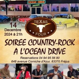 Le Samedi 14 Décembre 2024, Soirée Concert Country Rock des *Texas Four*, à 21h00, à L’Océan Drive, 648, Avenue Corniche D’Azur, à Frejus (83