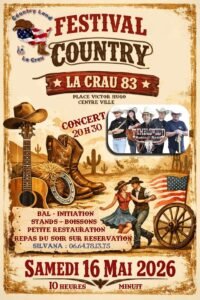 Accueil » Événements » (83) LA CRAU / FESTIVAL COUNTRY LE 16.05.26.