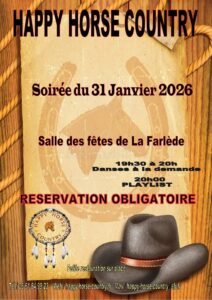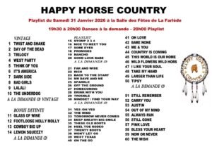 Le Samedi 31 Janvier 2026, Soirée Country des *Happy Horse Country *, à 20h00, Salle des Fetes de La Farlède (83), Var.