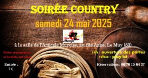 Le Samedi 24 Mai 2025, Soirée Country chez *Fire Stomp*, à 19h30 Salle de L’Amicale Muyoise, Avenue Ste Anne, à Le Muy (83), Var.