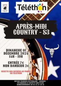Le Dimanche 1er Décembre 2024, Après Midi Bal Country au profit du Téléthon, chez *Country Lorgues*, de 14h00 à 19h00, Espace Francois Mitterand à Lorgu