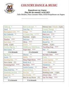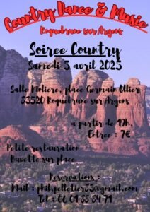 Le Samedi 05 Avril 2025, Soirée Country à 19h00, Salle Molière, Place Gervais Ollier, à Roquebrune sur Argens (83520), Var.