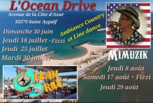 Le Dimanche 30 Juin 2024, Après Midi Country et Line Dance, avec *Mimuzik*, à *Océan Drive*, Avenue de le Cote D’Azur, à St Aygulf (83370), Var.