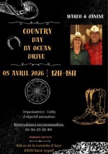 Le Dimanche 05 Avril 2026, Journée Country Day organisée par *Cathy*, à L’Océan Drive de 12h00 à 18h00, 648 Avenue de la Corniche D’Azur, à St Aygulf (83370), Var.