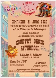 Le Dimanche 21 Juin 2026, Après Midi Country Dance des *Country Dance Afternoon*, pour la Fête de la Musique, de 14h00 à 19h30, Salle Codonel, à Beaumont de Pertuis (84), Va