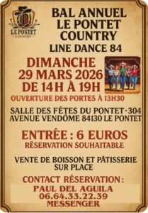 Le Dimanche 29 Mars 2026, Après Midi Bal Country de 14h00 à 19h00, Salle des Fetes , Avenue Vendome, à Le Pontet (84130), Vaucluse.