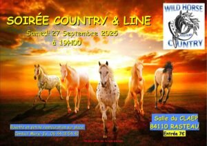 Le Samedi 27 Septembre 2025, Soirée Country et Line à 19h00, chez *Wild Horse Country*, Salle du Claep, à Rasteau (84110), Vaucluse.