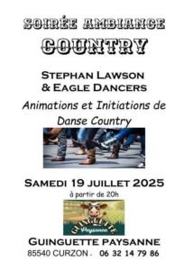 Le Samedi 19 Juillet 2025, Soirée Ambiance Country de *Stephan Lawson & Eagle Dancers*, avec Animations et Initiationsà la Danse Country, à 20h00, Guinguette Paysanne , à Curzon (85540