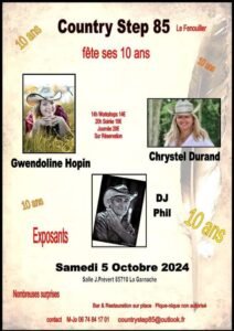 Le Samedi 05 Octobre 2024, Journée Country, à partir de 14h00, avec Workshops et Soirée, Salle Jean Prévert, à la Garnache (85710), Vendée.