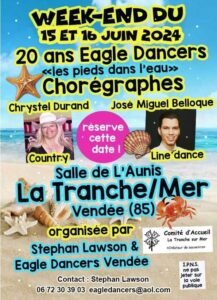 Les 15 et 16 Juin 2024, Week End Country Line Dance , Salle de L’Aunis, à La Tranche sur Mer (85), Vendée.