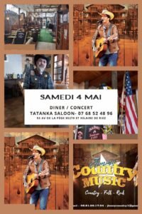 Le Samedi 04 Mai 2024, Soirée Diner Concert Country, au Tatanka Saloon, 53, Avenue de la Pège, à St Hilaire de Riez (85), Vendée.