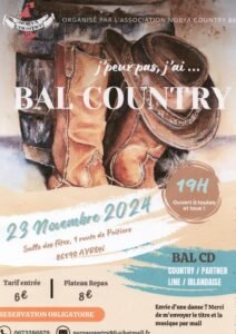 Le Samedi 23 Novembre 2024, Bal Country cd de *Norva Country 86*, à 19h00, Salle des Fetes, 01, Route de Poitiers, à Ayron (86190), Vienne.