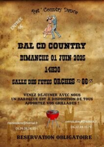 Le Dimanche 1er Juin 2025, Après Midi Bal Country cd à 14h30, chez *Pat Country Dance*, Salle des Fetes de Orches (86), Vienne.