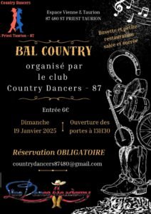 Accueil » Événements » (87) ST PRIEST TAURION / APRES MIDI BAL COUNTRY LE 19.01.25.