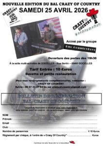 Le Samedi 25 Avril 2026, Bal Country des *Crazy Of Country*, avec Concert du *Duo Country Boys*, à 19h30, SalleMulti Activités, rue Bertin, à Docelles (88460), Vo