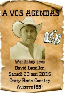 Le Samedi 23 Mai 2026, Journée Country des *Crazy Boots Country, avec Workshop de *David Lecaillon*, à Auxerre (89), Yonne.