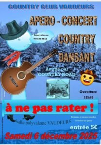 Accueil » Événements » (89) VAUDEURS / SOIREE APERO CONCERT COUNTRY DANSANT LE 06.12.25.
