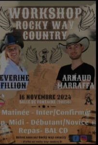Le Samedi 16 Novembre 2024, Journée Country de *Rocky Way Country*, avec Workshop de *Séverine Fillion* et *Arnaud Marraffa*, Salle de F