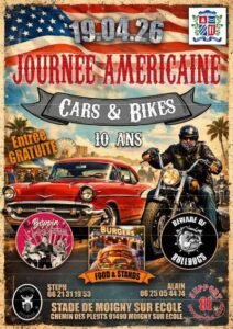 Le Dimanche 19 Avril 2026, Journée Americaine des 10 ans de Cars & Bikes, Stade , Chemin des Pleuts, à Moigny sur Ecole (91490), Essonne.