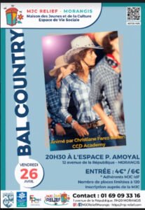 Le Vendredi 26 Avril 2024, Bal Country à 20h30, Espace P.Amoyal, 12, Avenue de la République, à Morangis (91420), Essonne.