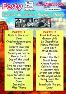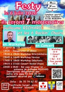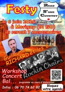 Le 06 Juin 2026, Journée Festy des *Road S’one Country*, avec Workshop de*Guillaume Richard* et Concert des *Rockin ‘Chairs*, à Morigny (