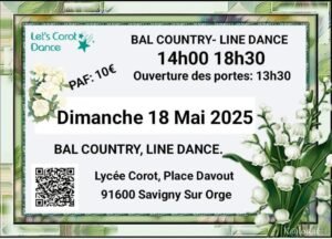 Le Dimanche 18 Mai 2025, Après Midi Bal Country Line Dance, chez *Let’s Corot Dance*, de 14h00 à 18h30, Lycée Corot, Place Da