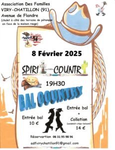 Le Samedi 08 Février 2025, Bal Country chez *Spirit Country*, à 19h30, Avenue de Flandre, à Viry Chatillon (91), Essonne.