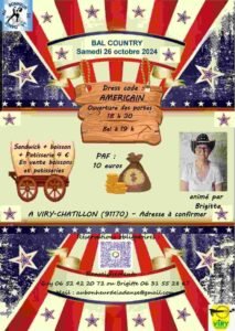 Le Samedi 26 Octobre 2024, Bal Country , animé par *Brigitte*, à 19h00, à Viry Chatillon (91170), Essonne.