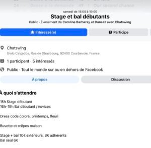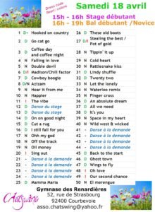 Le Samedi 18 Avril 2026, Journée avec Stage Débutant de 15h00 à 16h00 et Bal Débutant Novice de 16h00 à 19h00, au Gymnase des Renardières, 52 rue de Strasbourg, à Courbevoie (92400), Hauts de Seine.