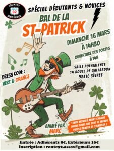 Bal de la St Patrick Spécial Débutants et Novices, à 14h30, Salle Polyvalente, 14 Route de Gallardon, à Sèvres (92310), Hauts de Seine.