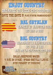 Les Samedi 17 et Dimanche 18 Janvier 2026, Week End Country et CCS, chez *Enjoy Country*,
