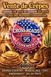 Les Samedi 18 et 25 Avril 2026 Journée Cross Roadavec Vente de Crêpes, Danses Country , Maquillage, Tipi, Amérindien, Jeu de Piste, à Quai des Marques, Franconville (95), Val D’oise.