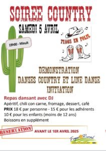 Le Samedi 05 Avril 2025, Soirée Country avec Démonstration, Initiation, chez *Tiags en Folie*, de 19h00 à 00h00, Foyer Rural de Seraincourt (95450), Val D’oise.